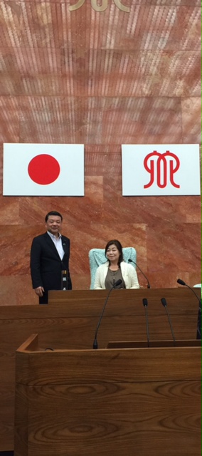 神奈川県議会第100代議長の松田良昭県議と再会、議長席に座らせていただく 荒川千明