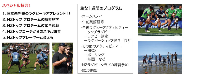 しかも、1週間で英語とラグビーの一挙両得!海外での生活体験をしてみたいラグビー大好きの子供たちへのスペシャル企画です。