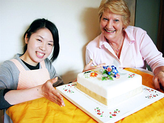 このコースでは、一週間の滞在中、レッスンが三回で、ケーキを焼いたり、アイシングのカバーをしたりデコレーションをしたりします。